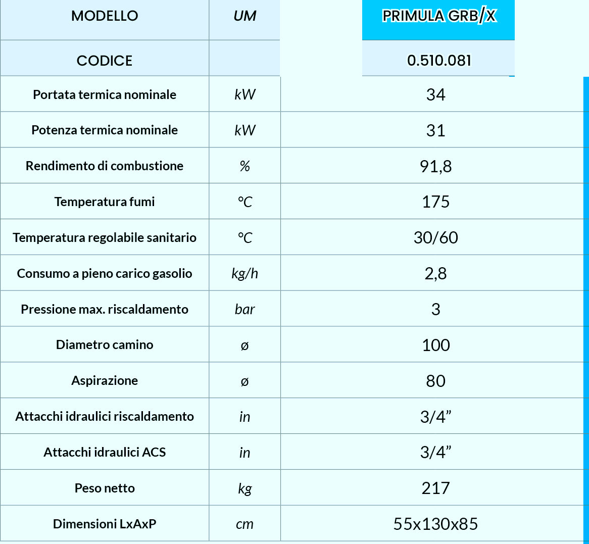 PRIMULA GRB/X 34 KW Caldaia a Gasolio A BASAMENTO con accumulo A.C.S. 120 Lt. in Acciaio INOX
