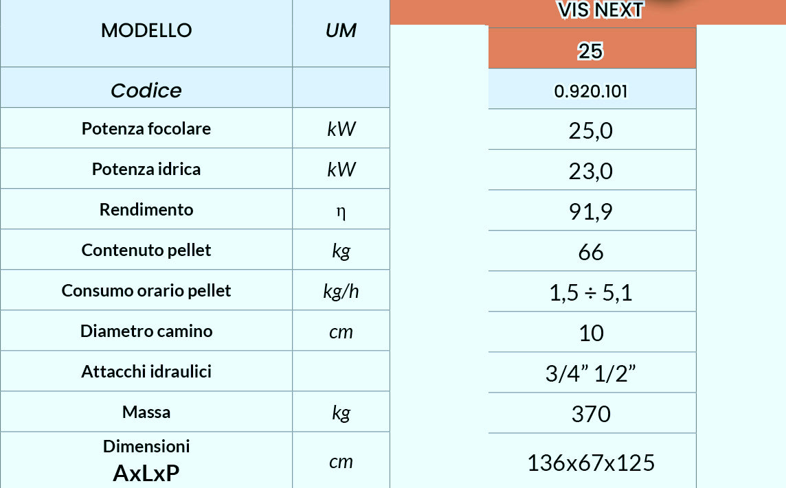 Cod. Prodotto: 0.920.103 VIS NEXT 25 (PUFFER + A.C.S. + PREDISPOSIZIONE SOLARE e P.D.C.)