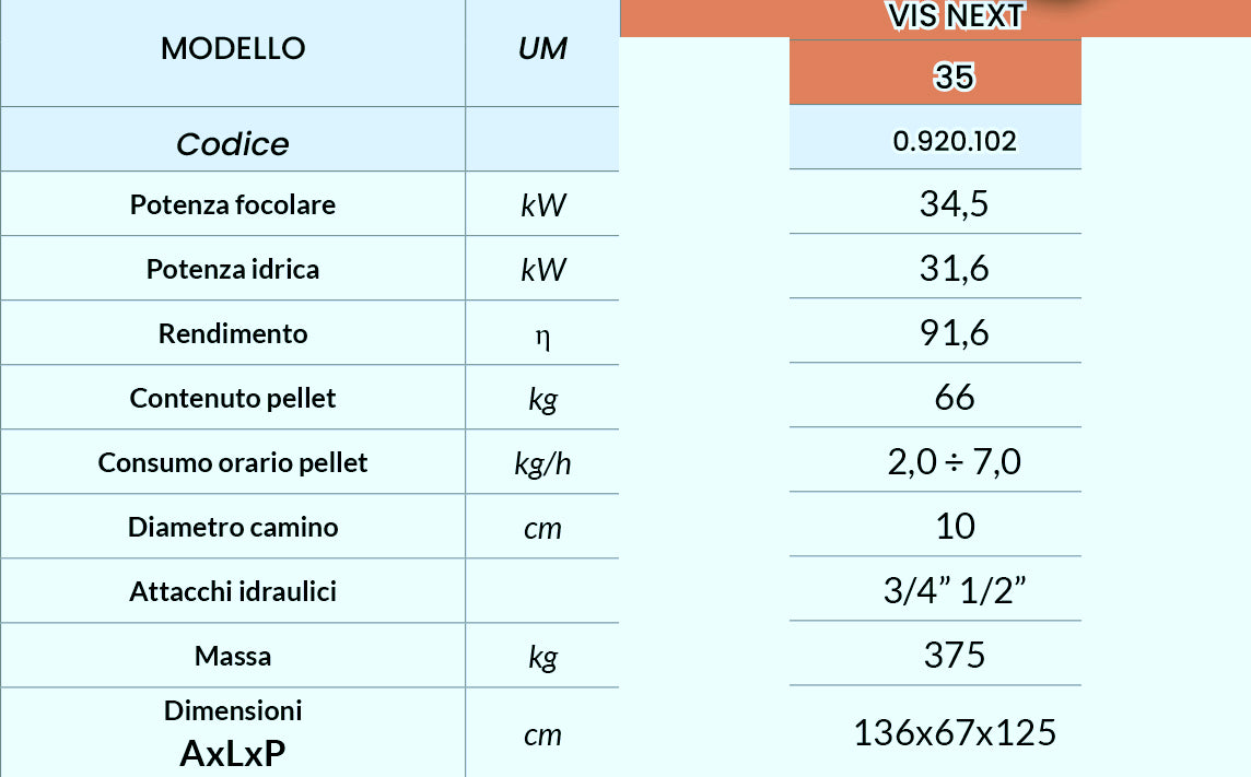Cod. Prodotto: 0.920.104 VIS NEXT 35 (PUFFER + A.C.S. + PREDISPOSIZIONE SOLARE e P.D.C.)