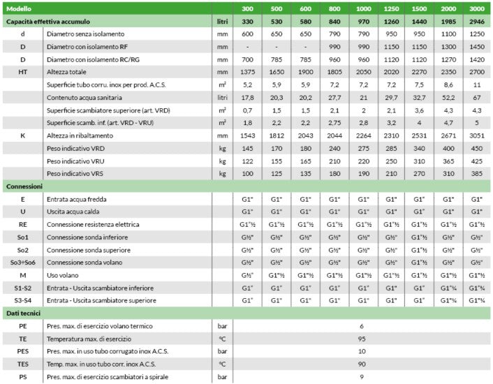 VRD - Volano termico con produzione di A.C.S. - Semirapida + doppio serpentino fisso